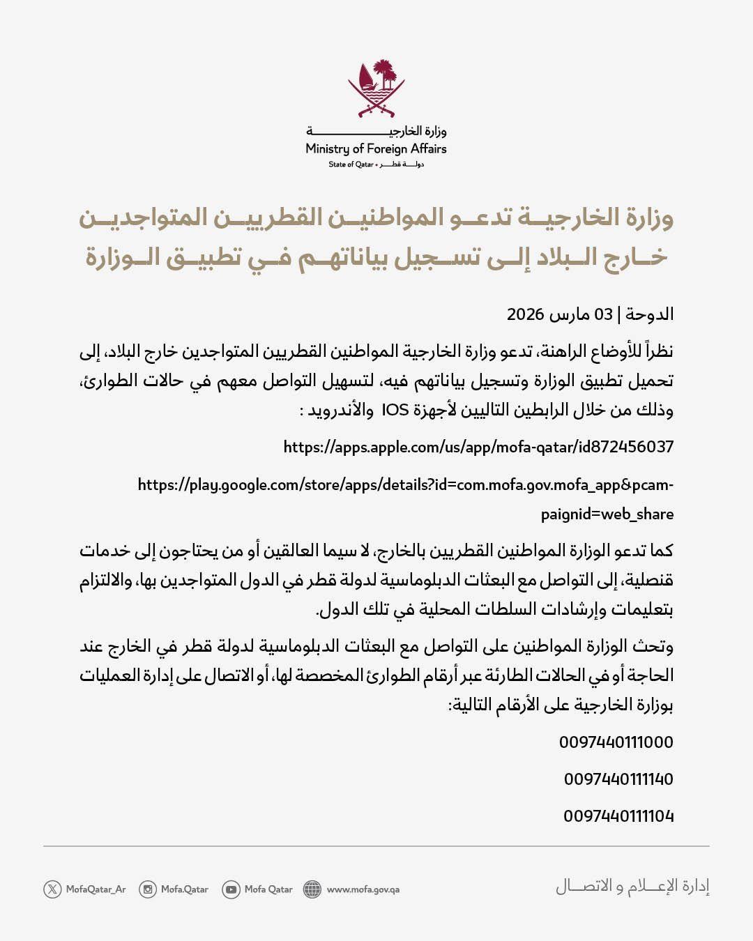 البريد الإلكتروني: washington@mofa.gov.qa